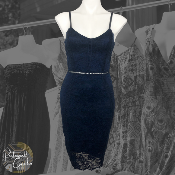 MiaoMiao Navy Lace Overlay Pencil Dress - Size Small