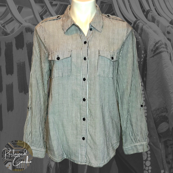 Forever 21 White and Black Striped Shirt - Size Small