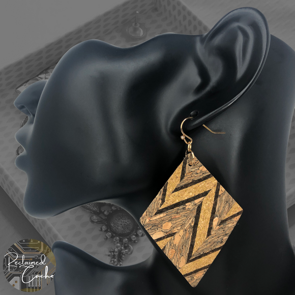 Brown Chevron Printed Cork Earrings