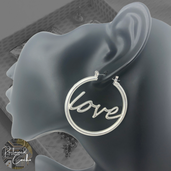 Matte Silver Love Hoop Earrings
