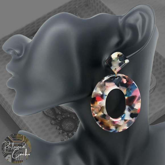 Multicolor Resin Oval Hoop Earrings
