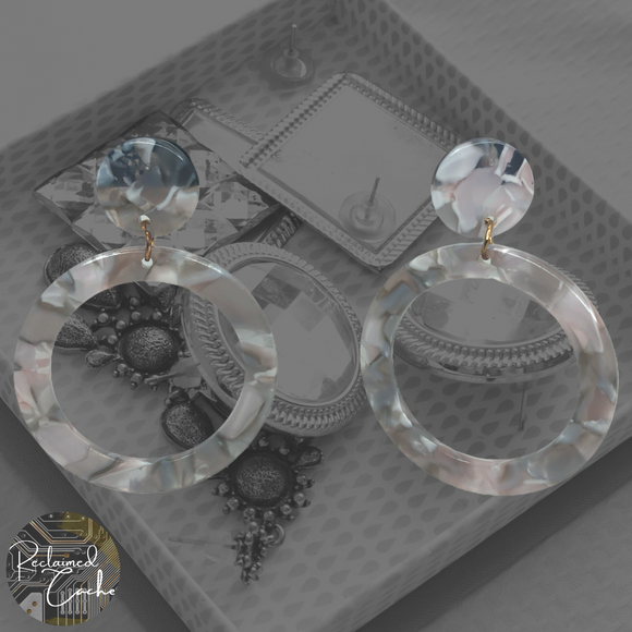 Marble Grey Resin Small Circular Hoop Earrings