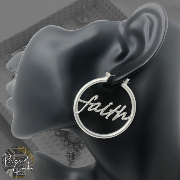 Matte Silver Faith Hoop Earrings