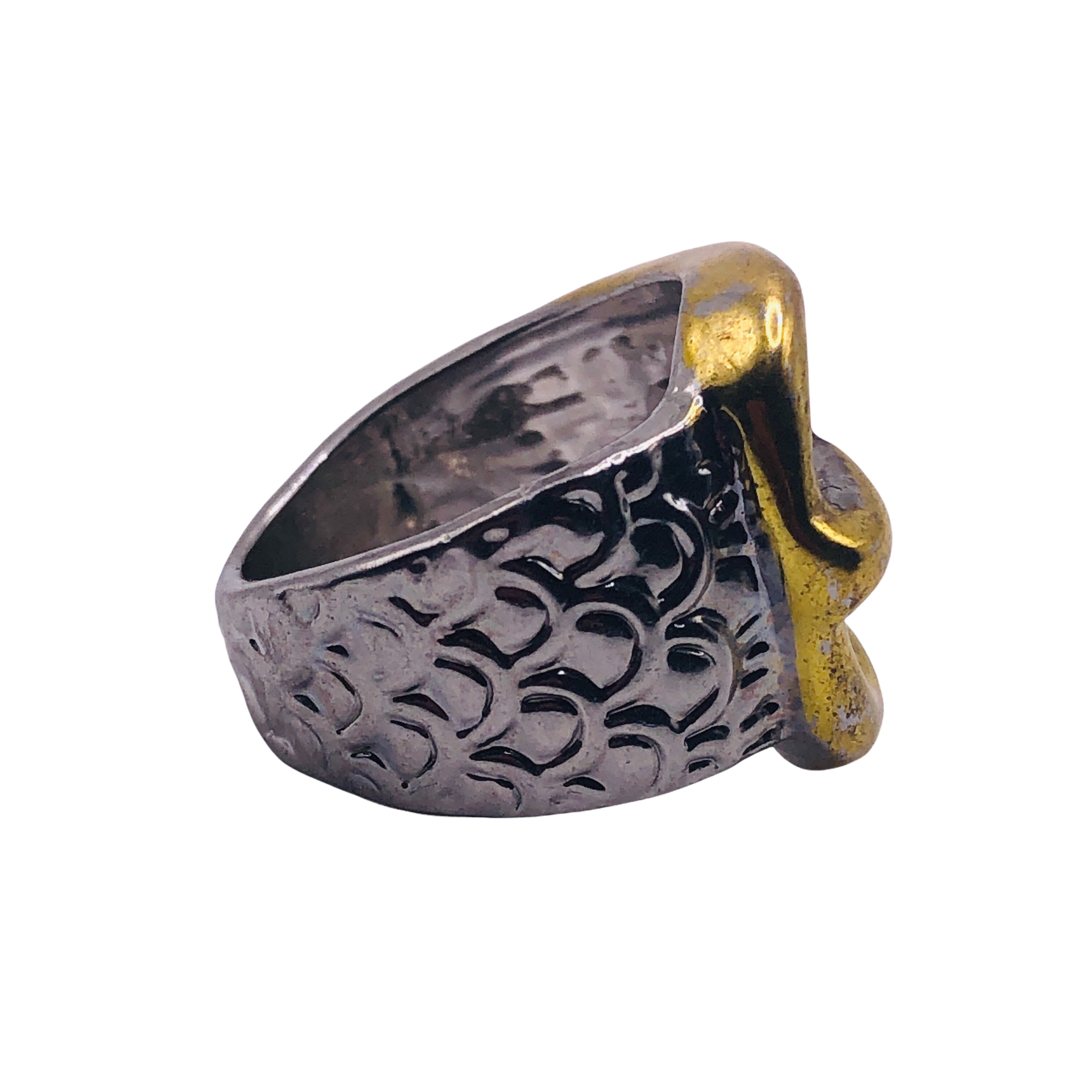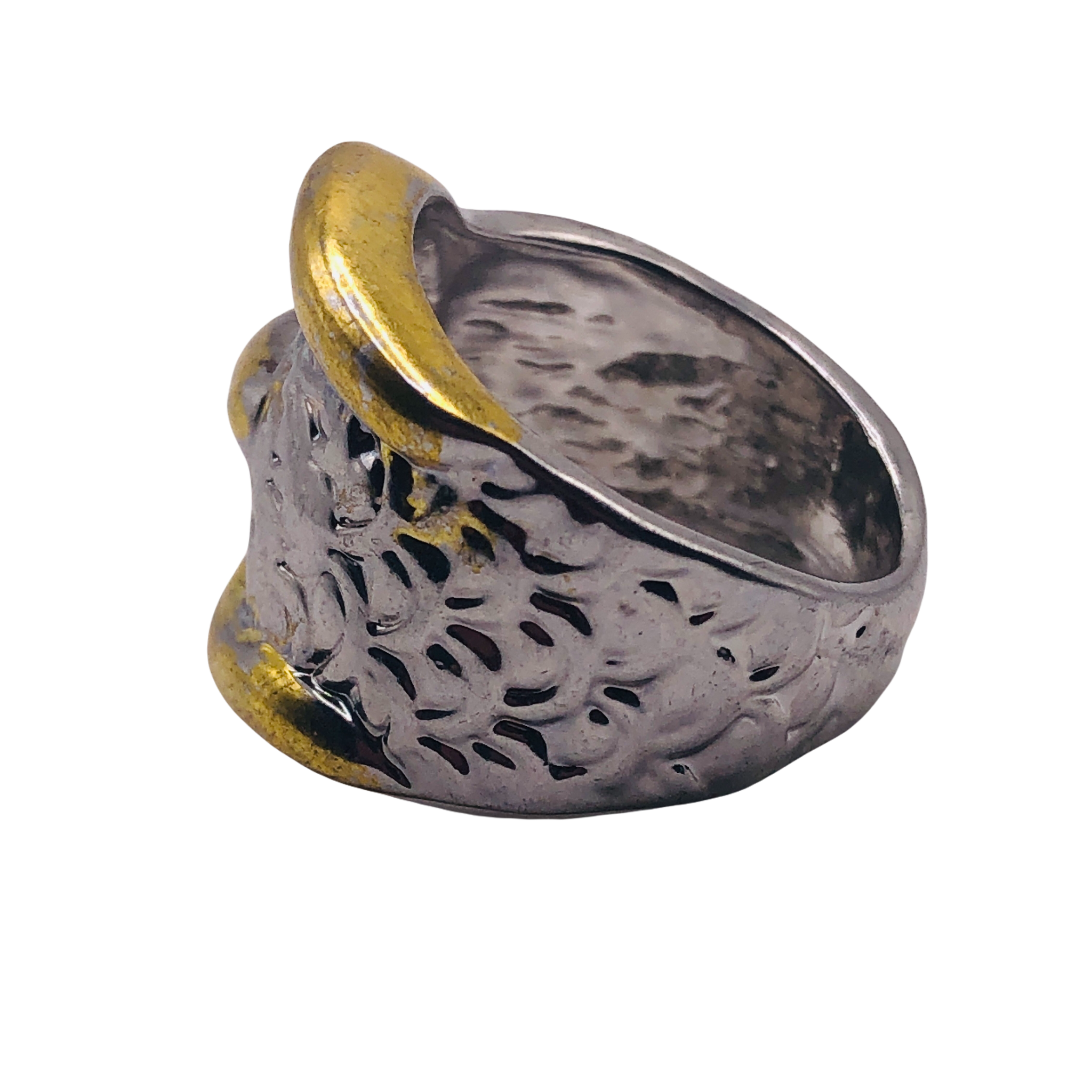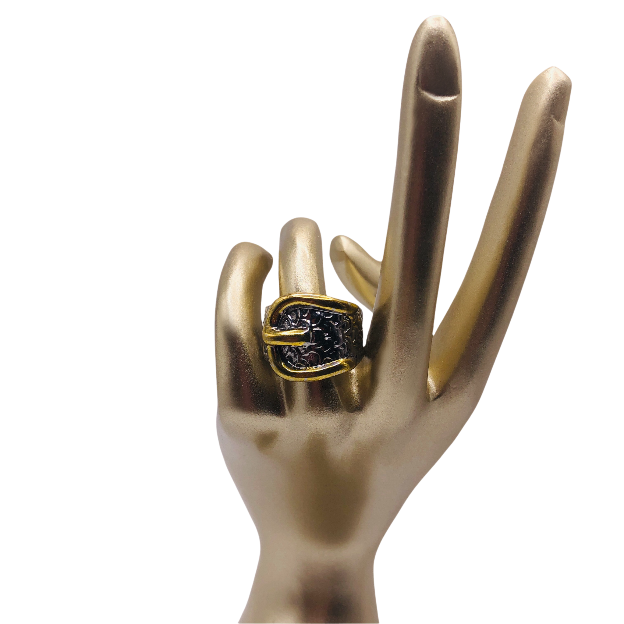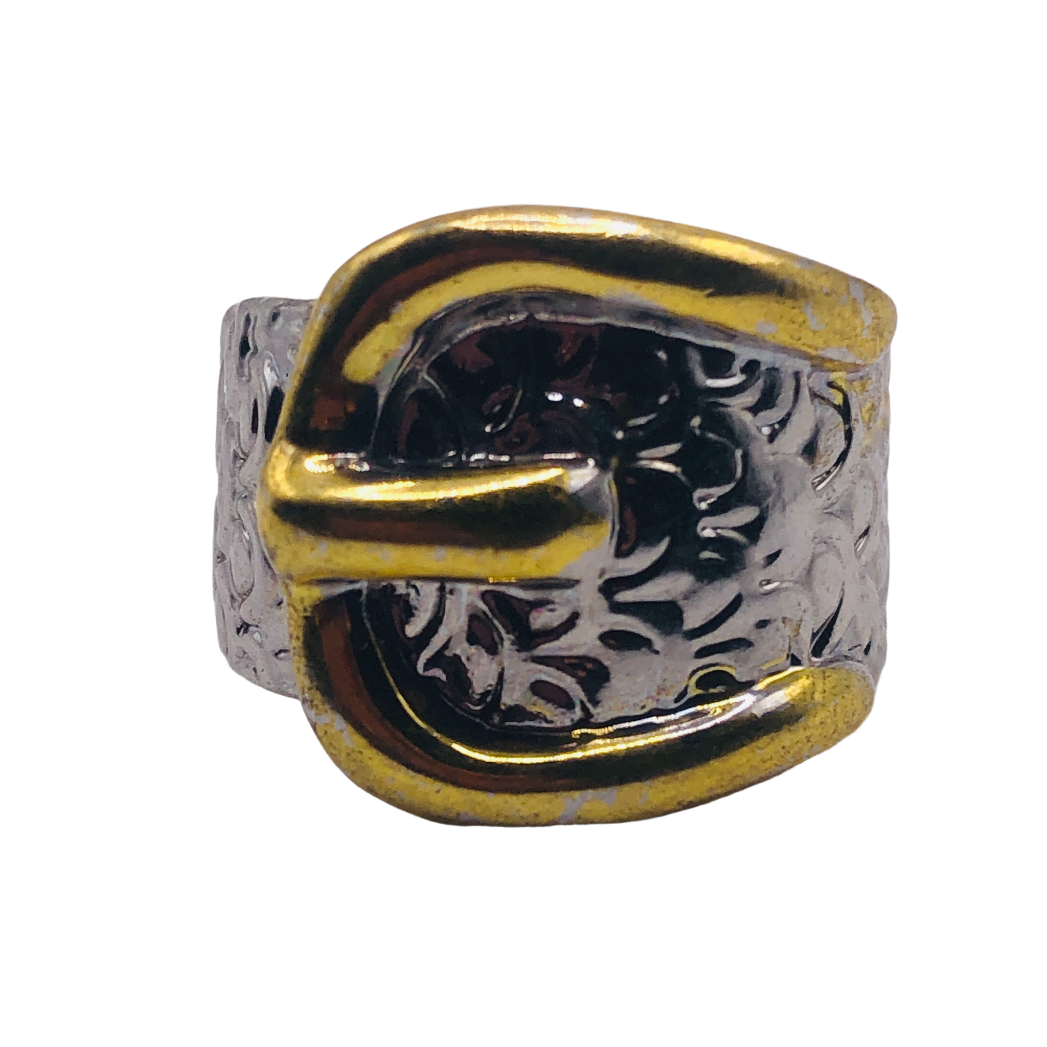 Silver and Gold Belt Buckle Ring - Size 5.5