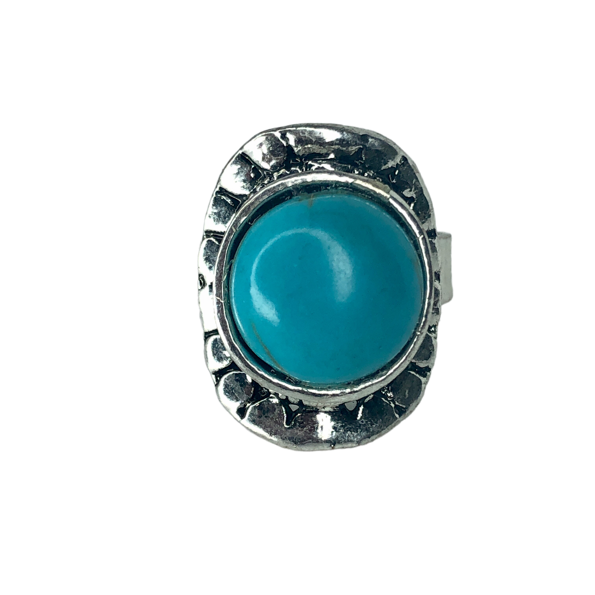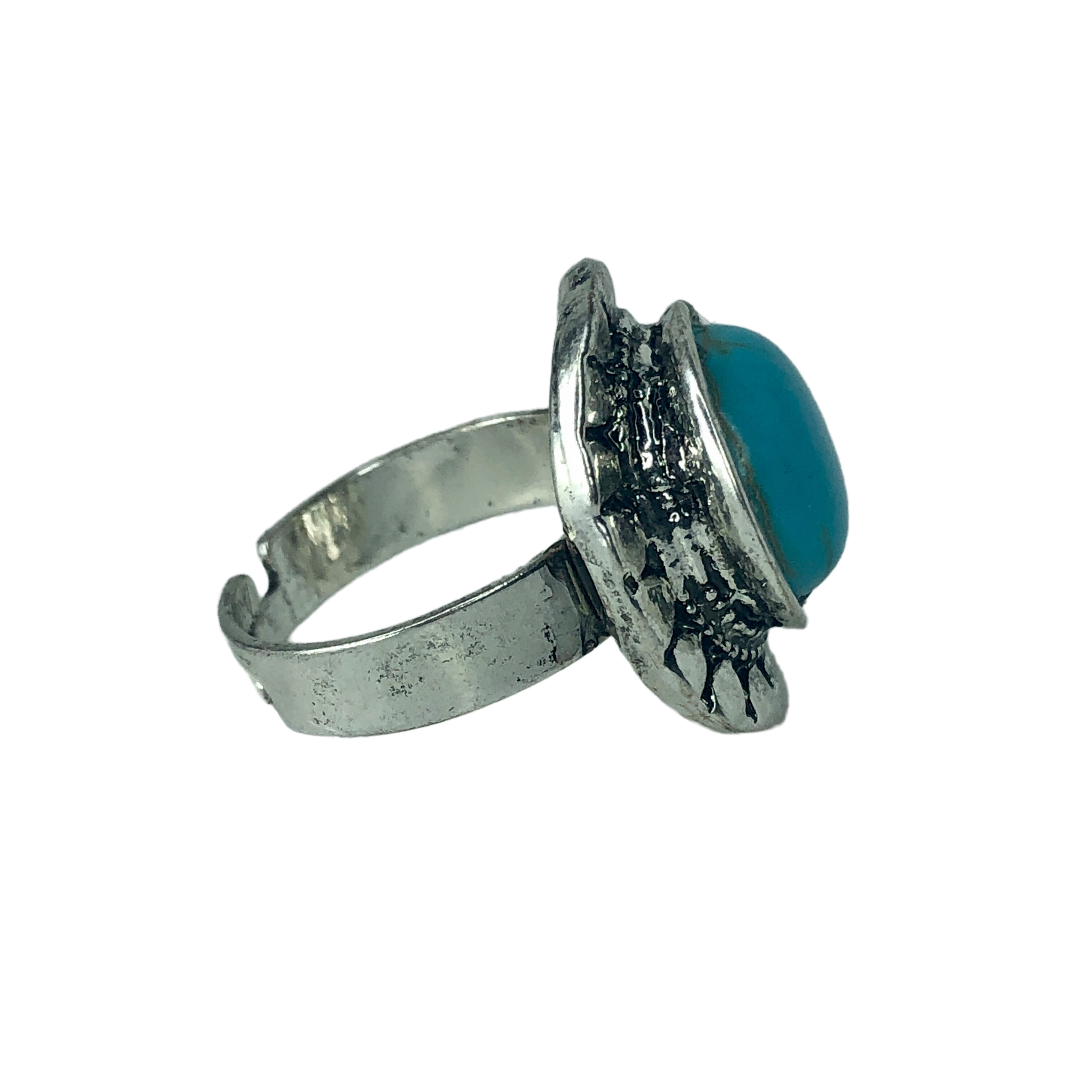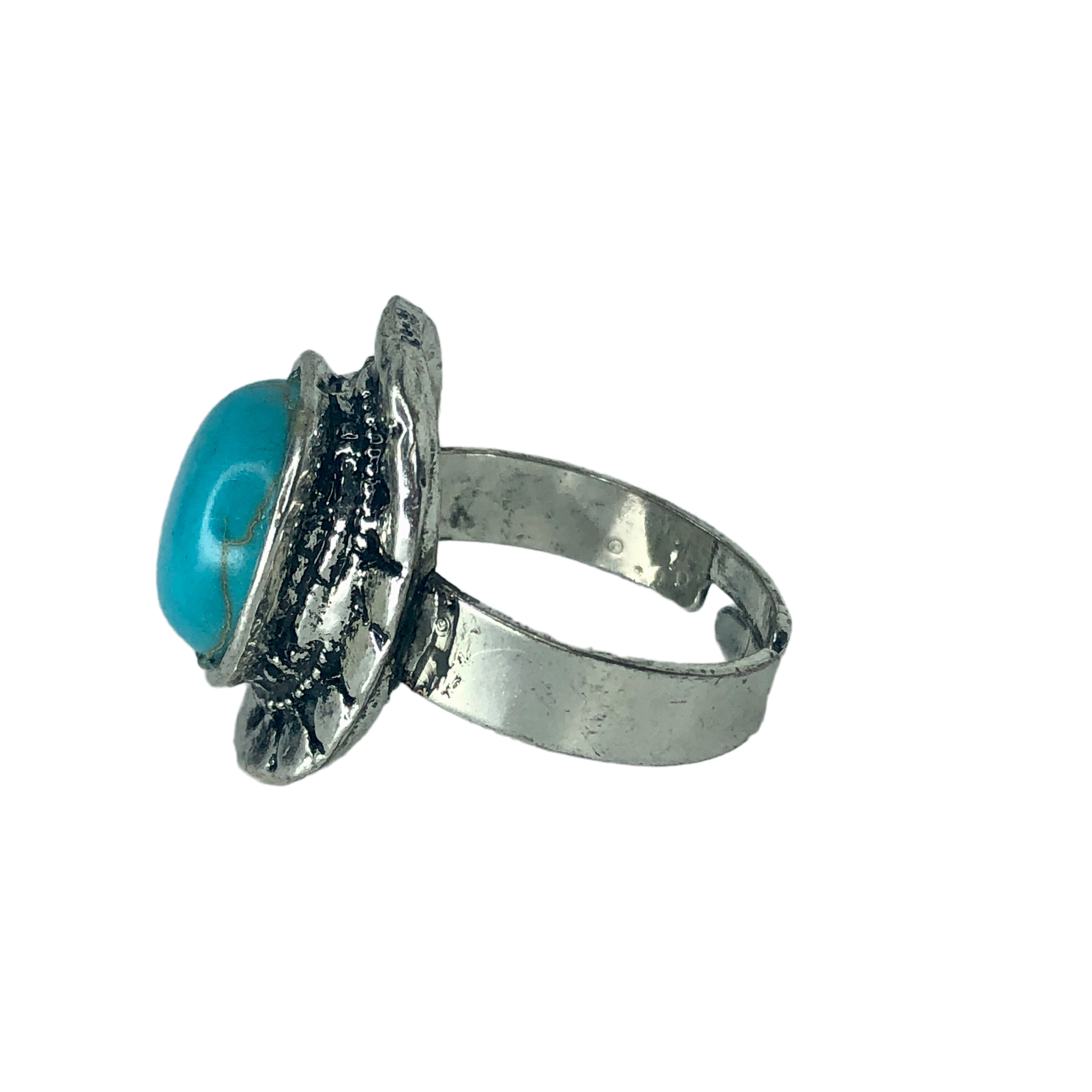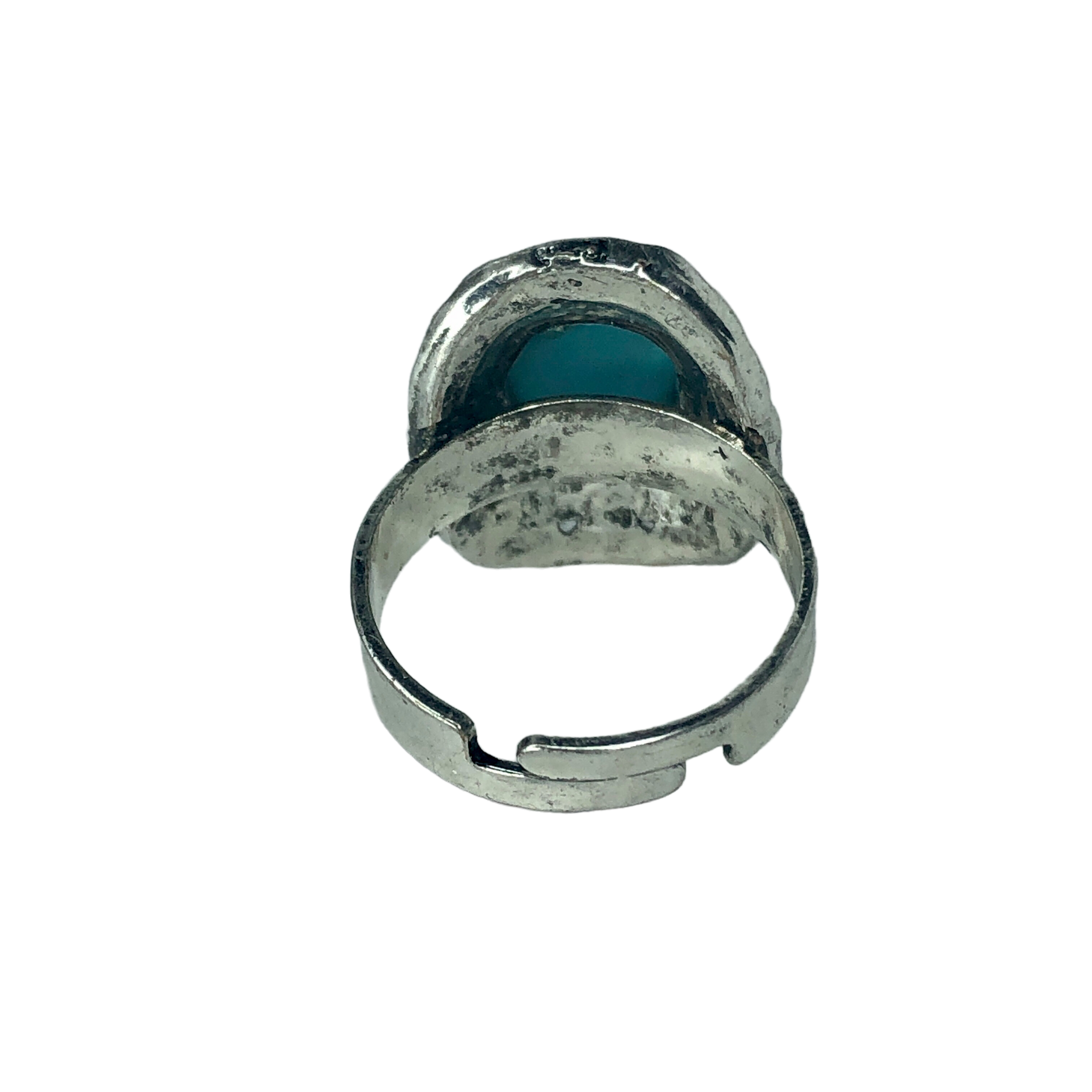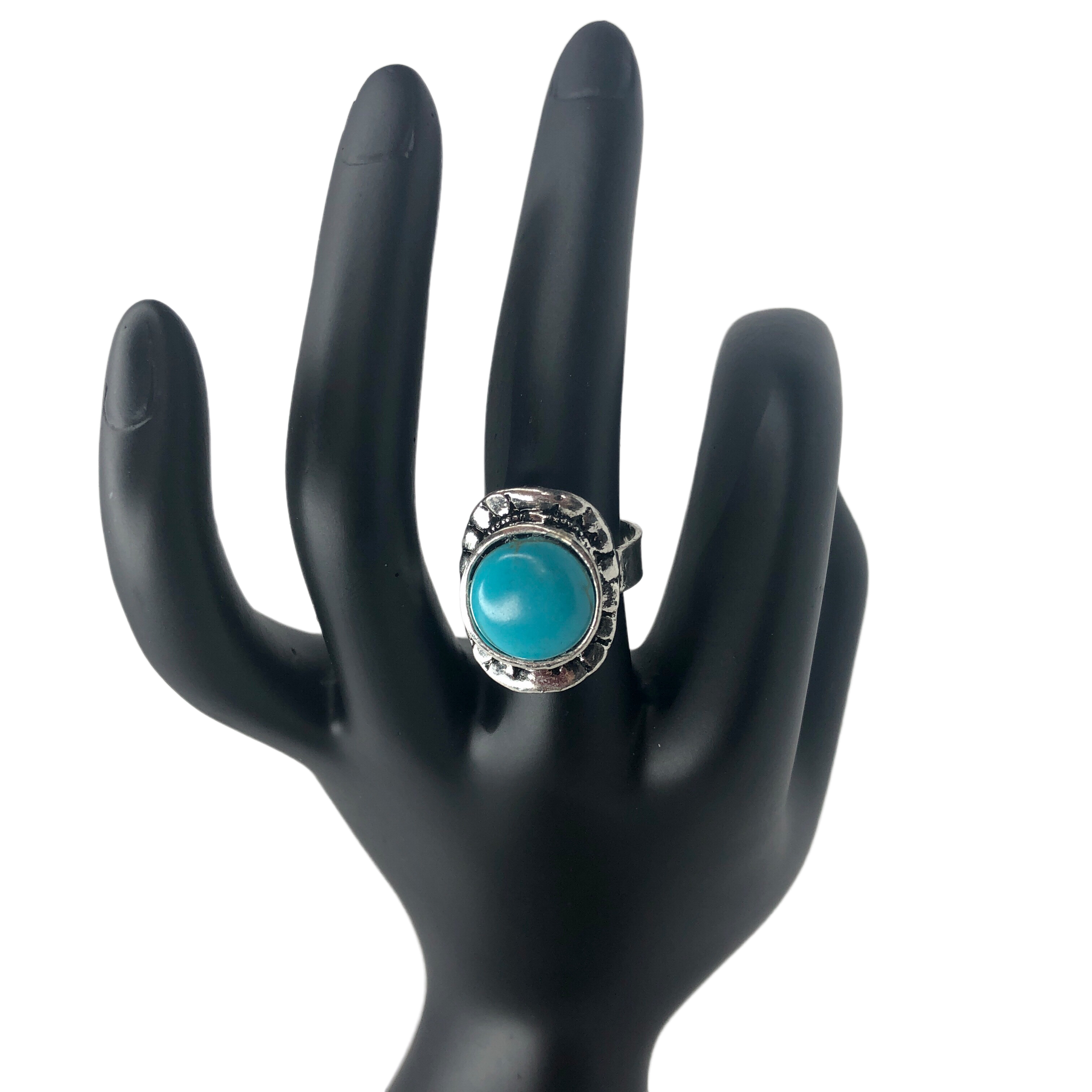 Silver Boho Ring with Turquoise Stone Ring - Size Adjustable