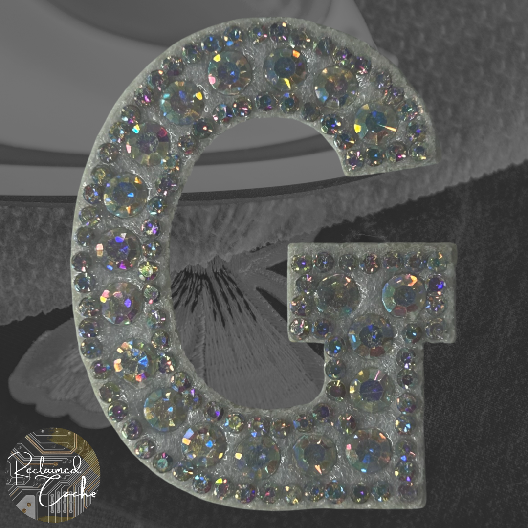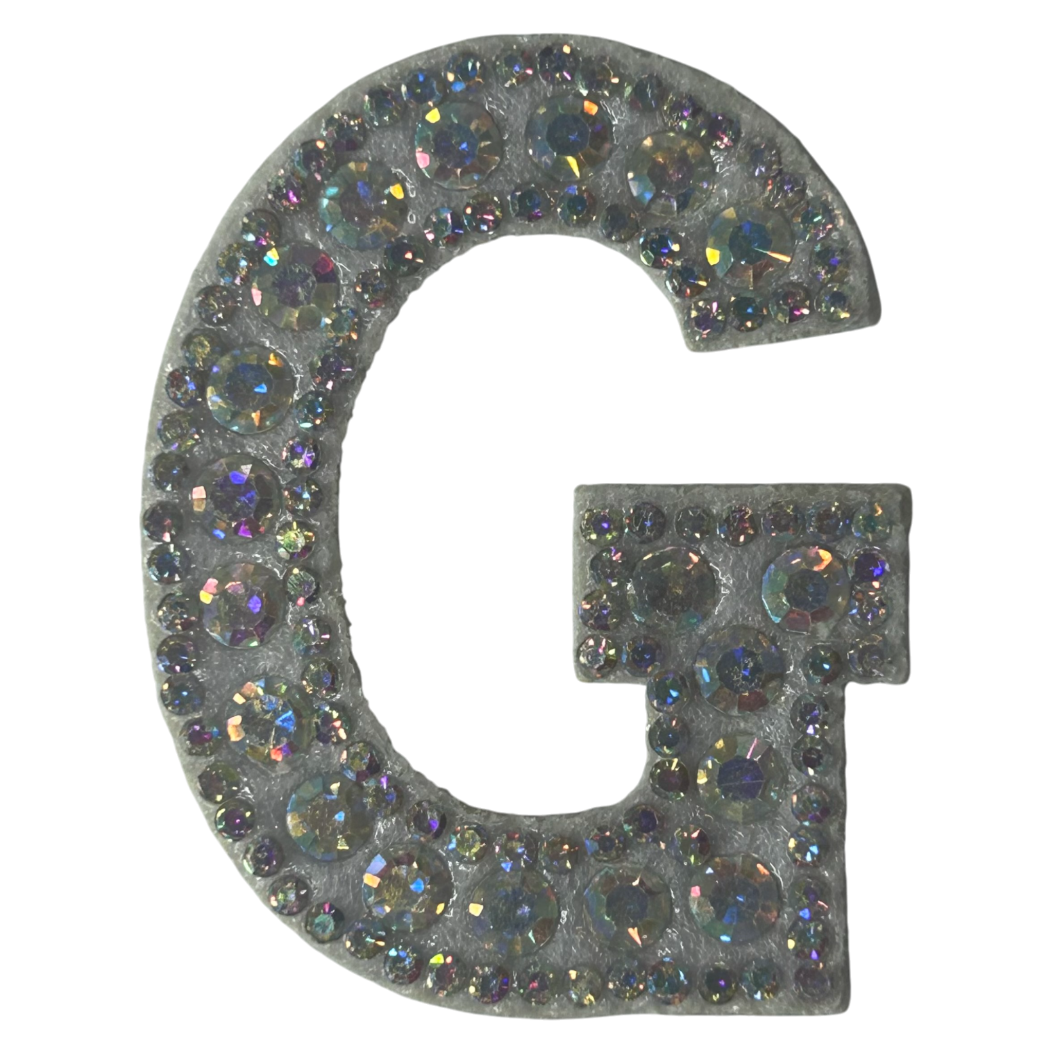 Iridescent Letter G Iridescent Rhinestone Iron On Patch