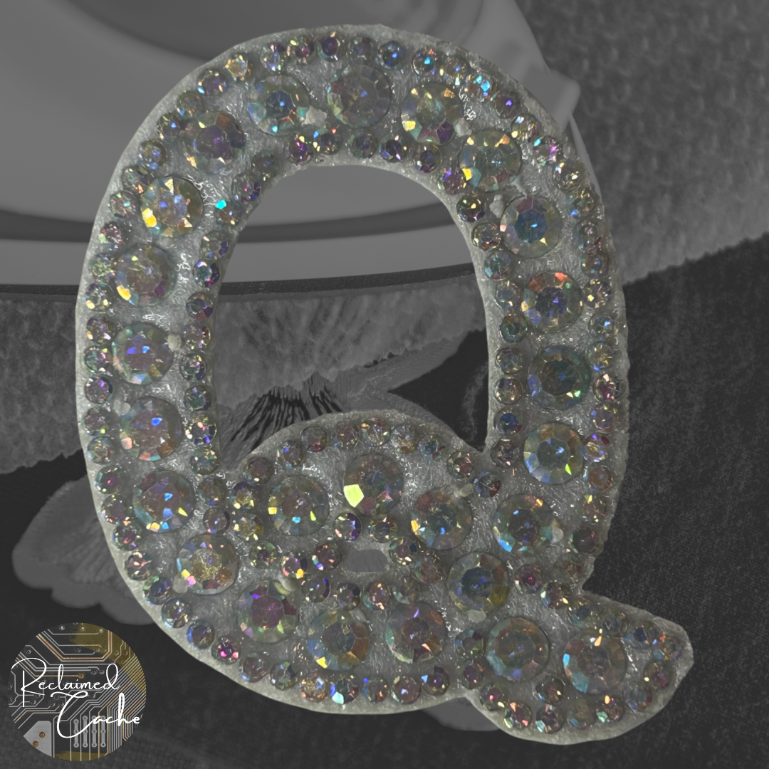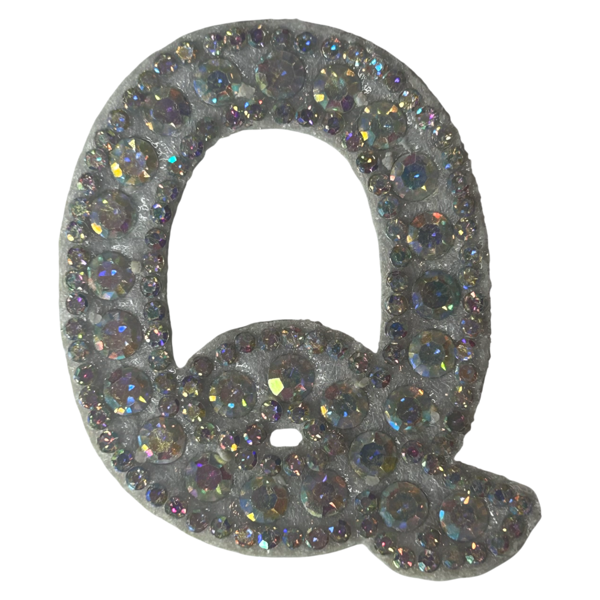 Iridescent Letter Q Iridescent Rhinestone Iron On Patch