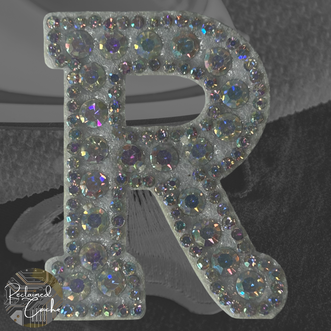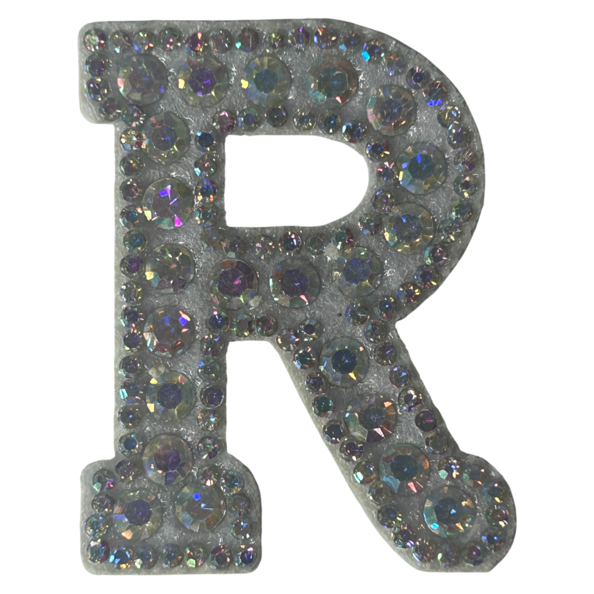 Iridescent Letter R Iridescent Rhinestone Iron On Patch