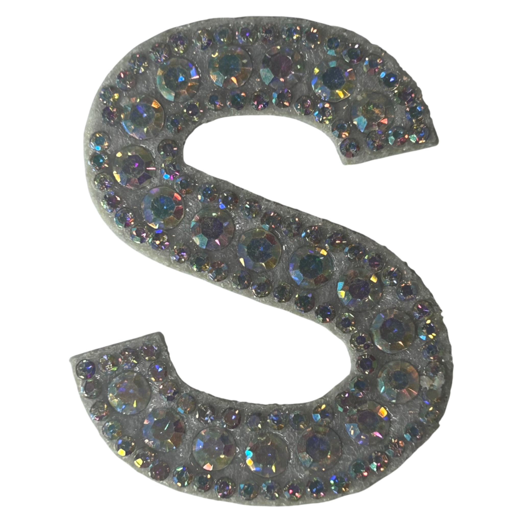 Iridescent Letter S Iridescent Rhinestone Iron On Patch