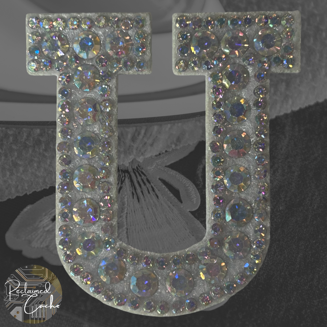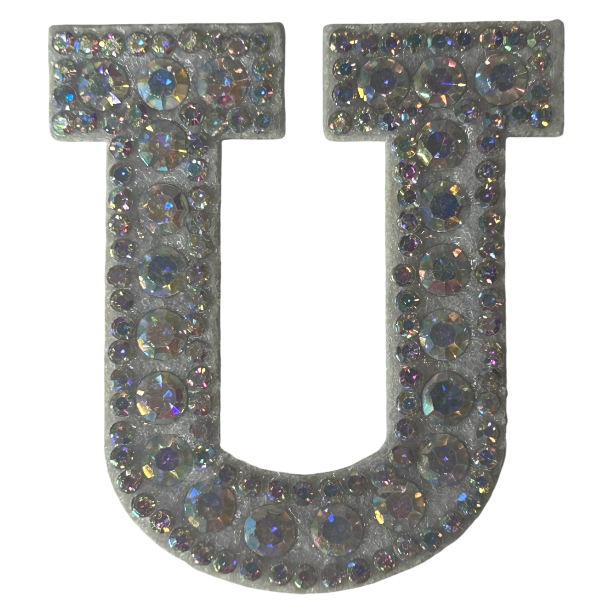 Iridescent Letter U Iridescent Rhinestone Iron On Patch