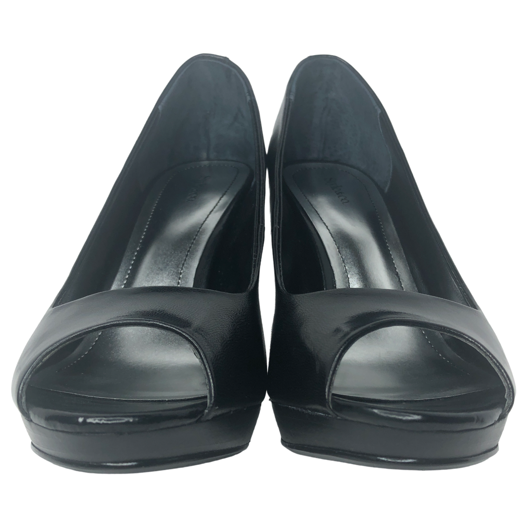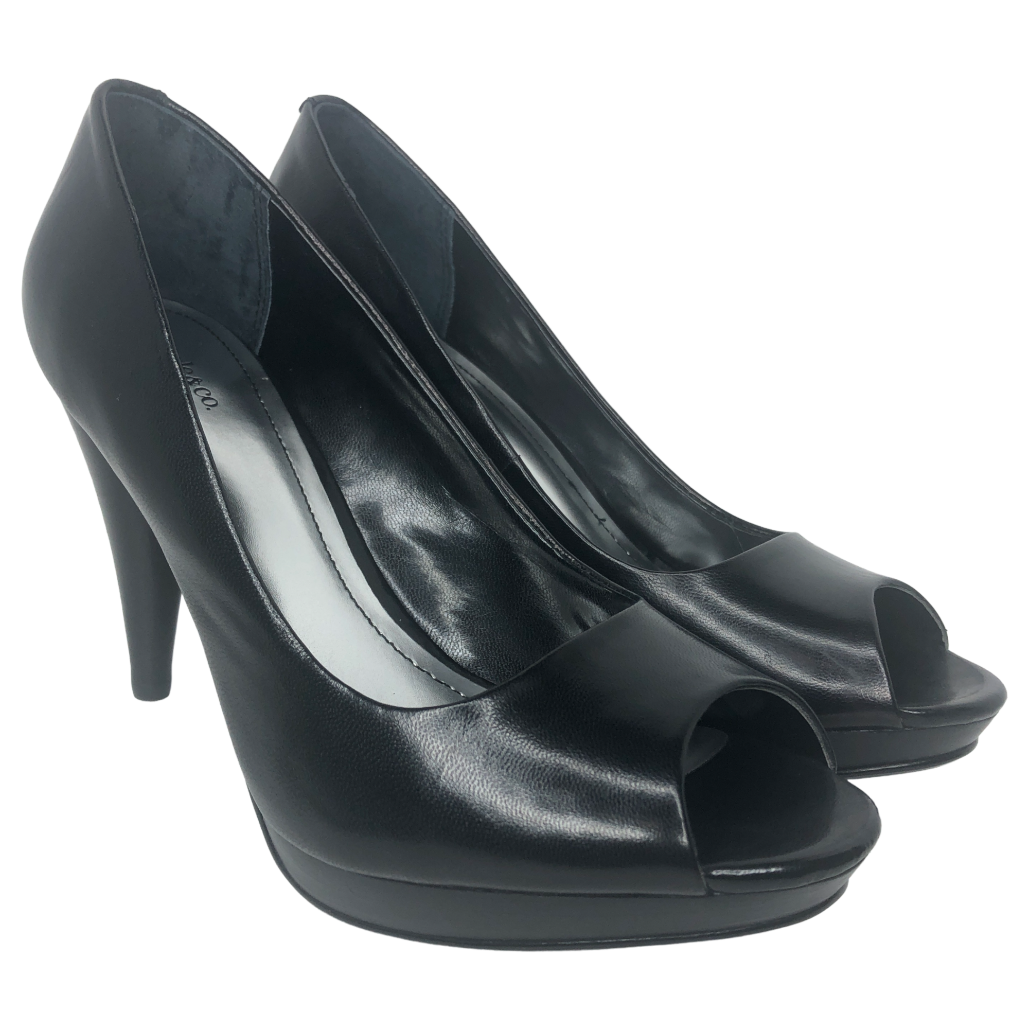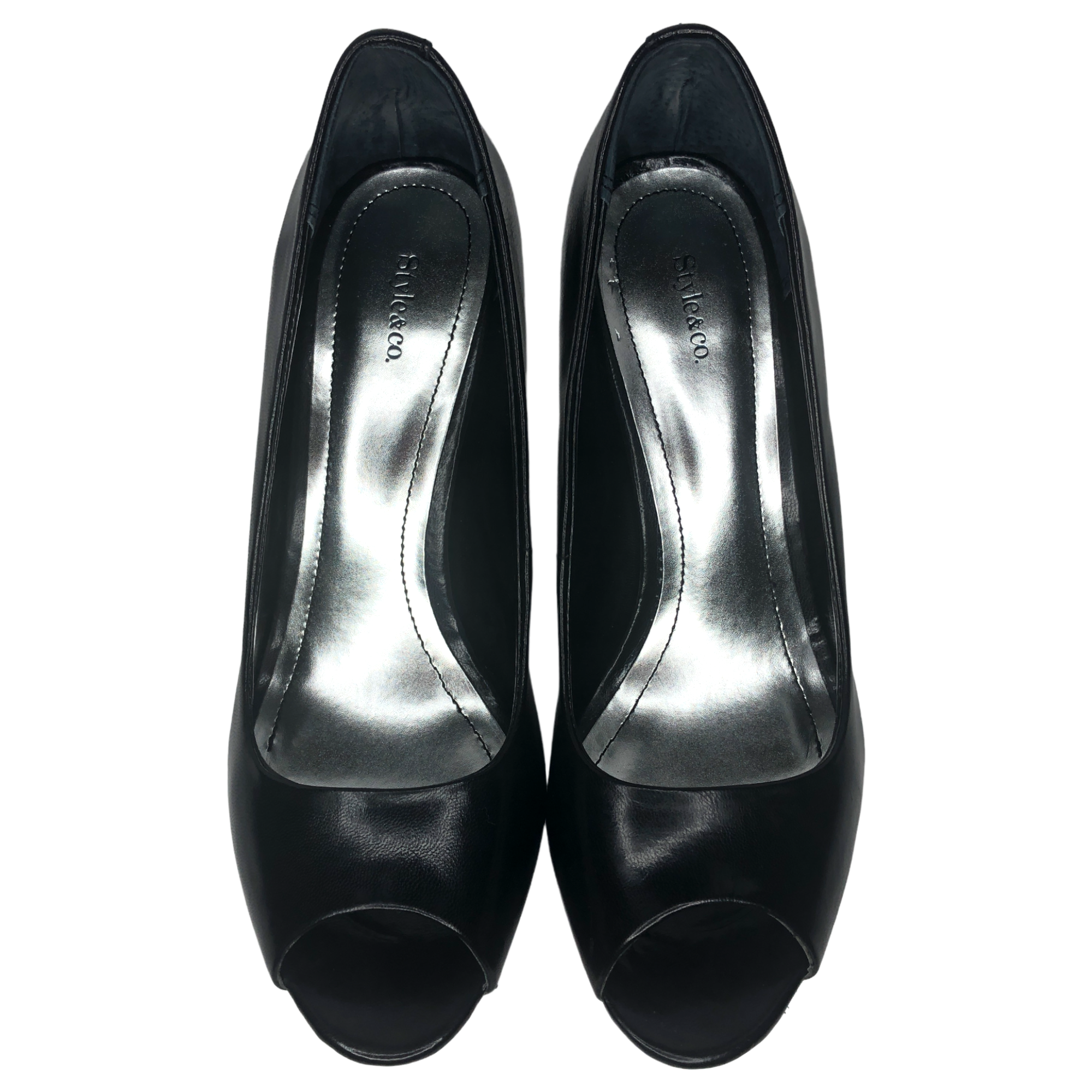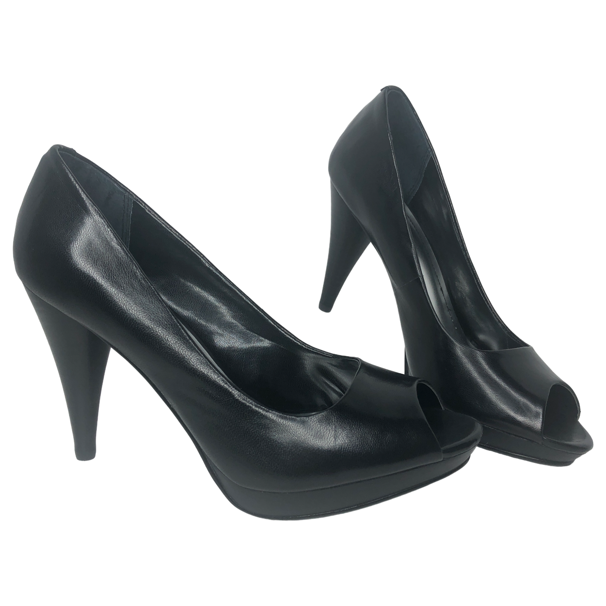 Style & Co. Black Celine Leather Peep Toe Heels - Size 8 - Women