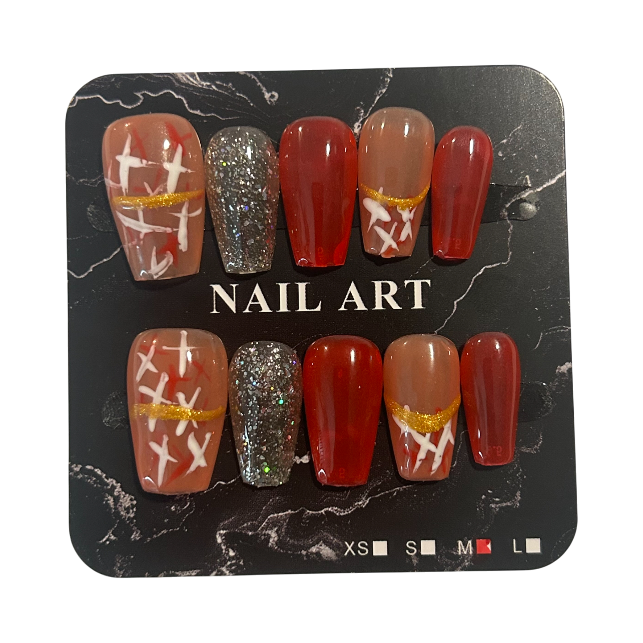 Translucent Pink and Silver Glitter Medium Coffin Press On Nails - Size Medium