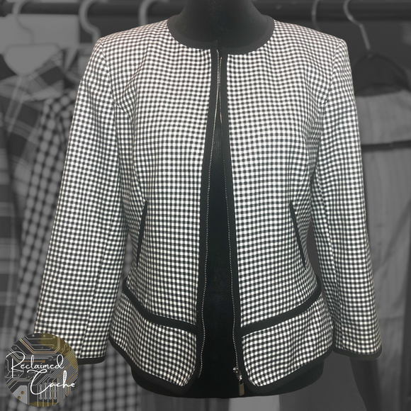 Calvin Klein Black and White Gingham Blazer - Size 2