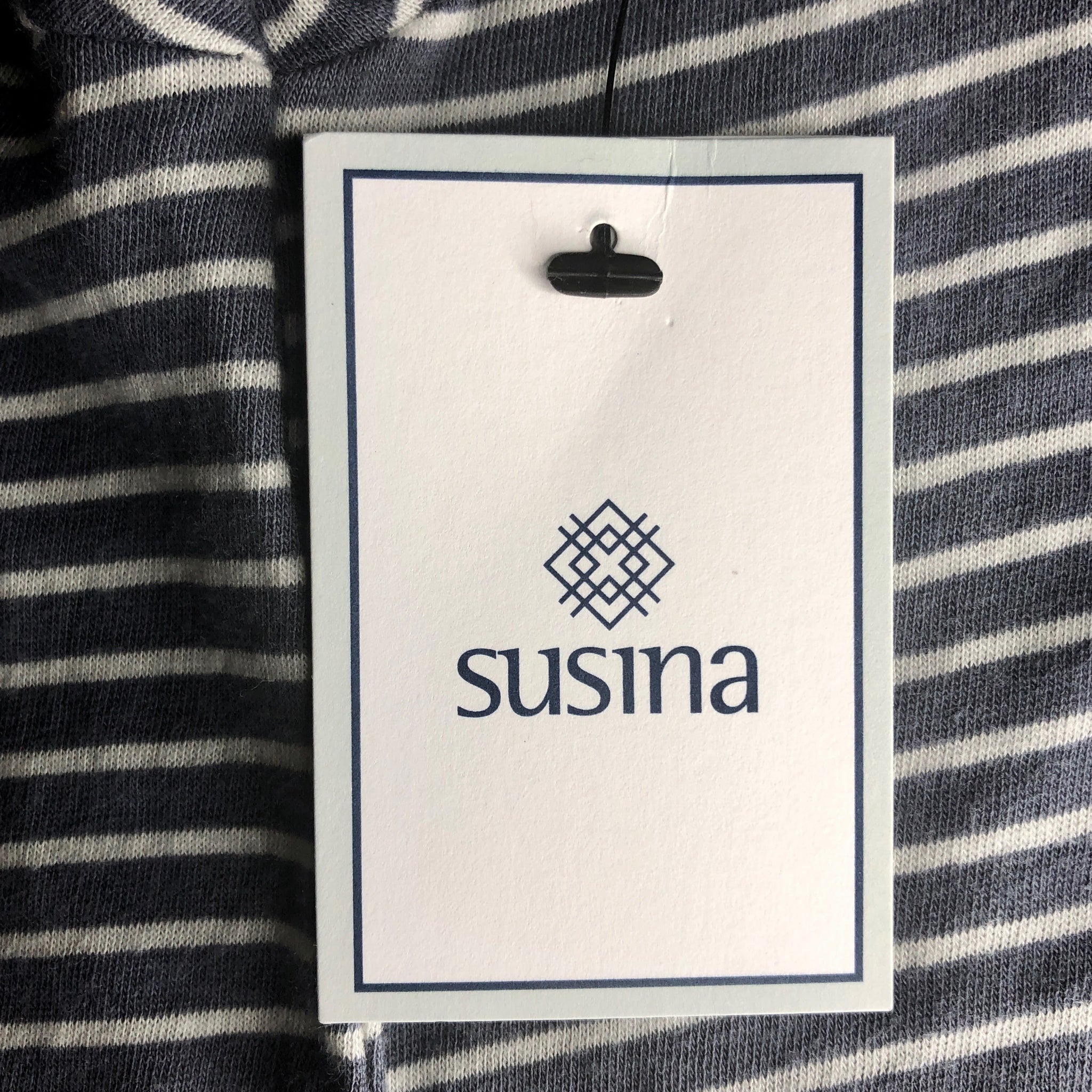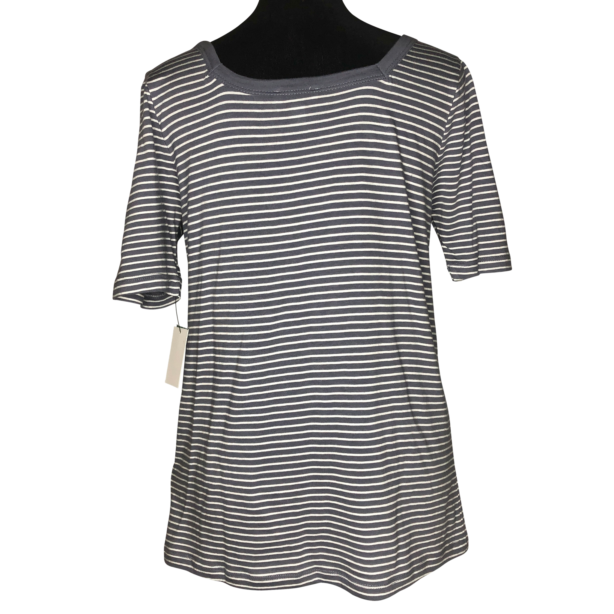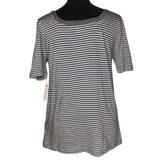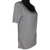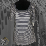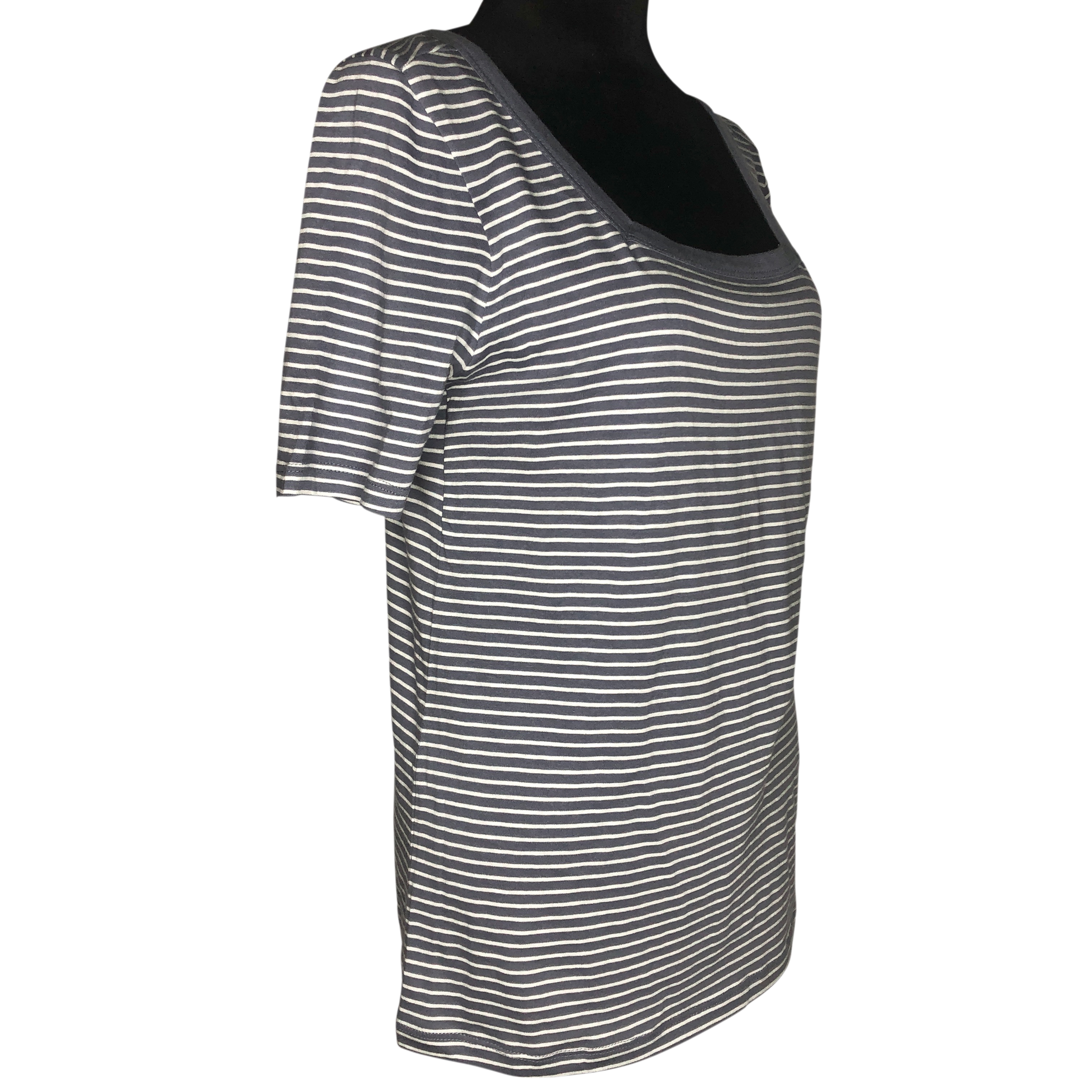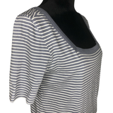Susina Grey Folkstone Pinstripe Square Neck Short Sleeve Striped Print T-Shirt - Size XS