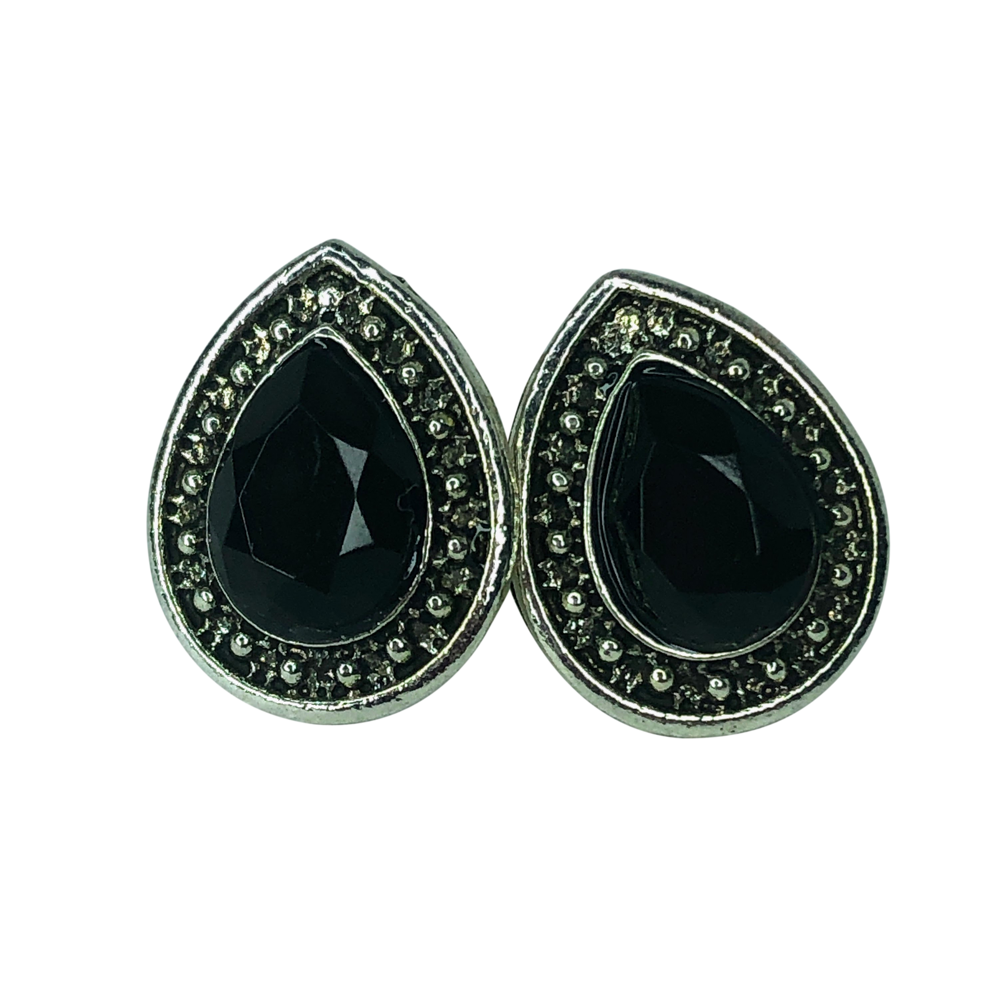 Black Teardrop Stud Earrings