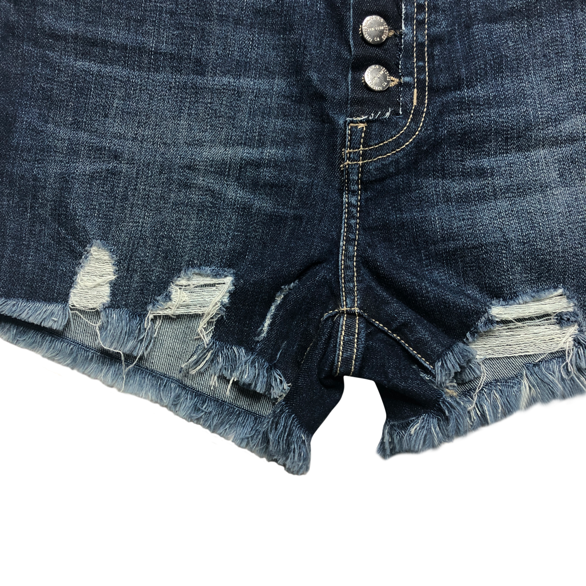 - Frayed uneven hem