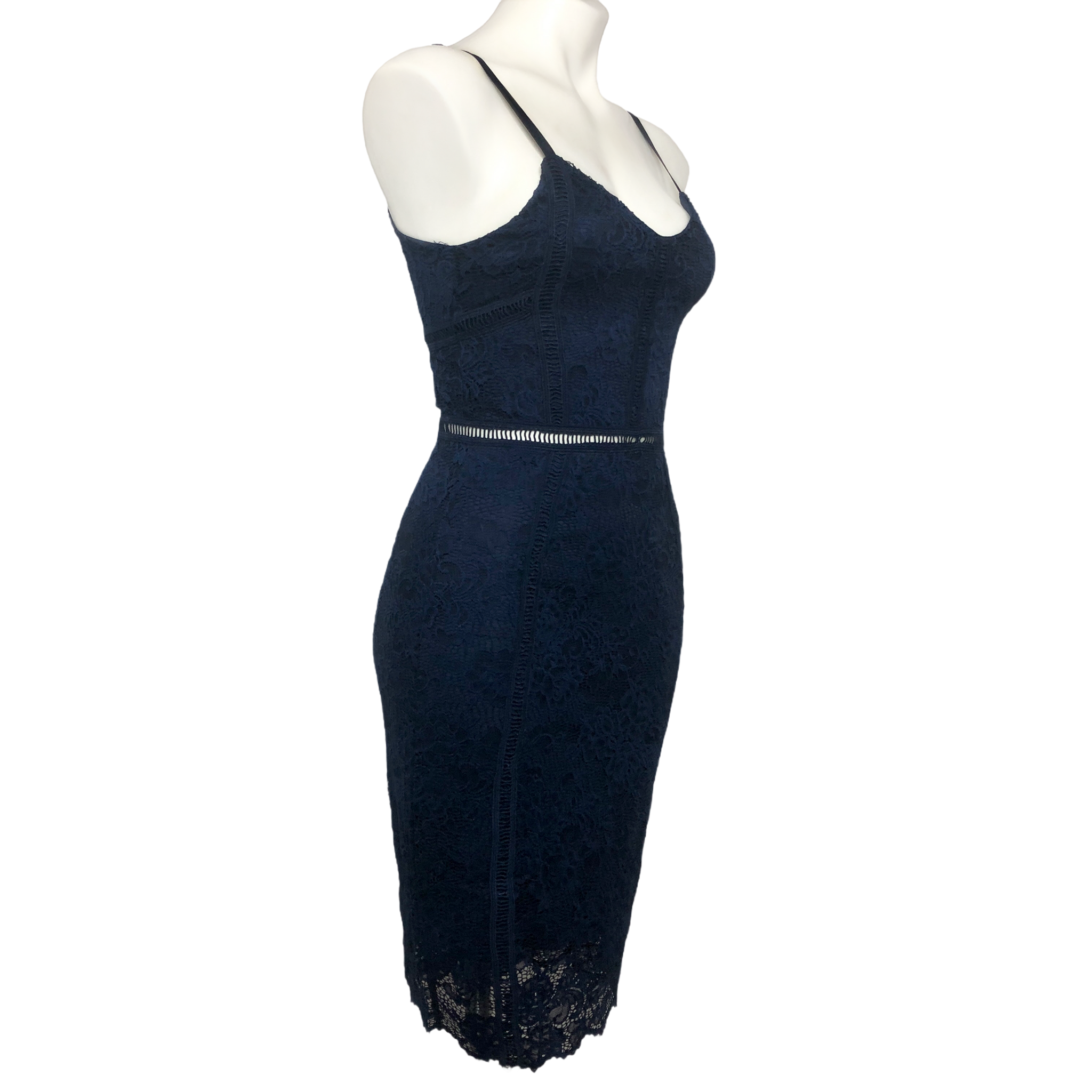 MiaoMiao Navy Lace Overlay Pencil Dress - Size Medium