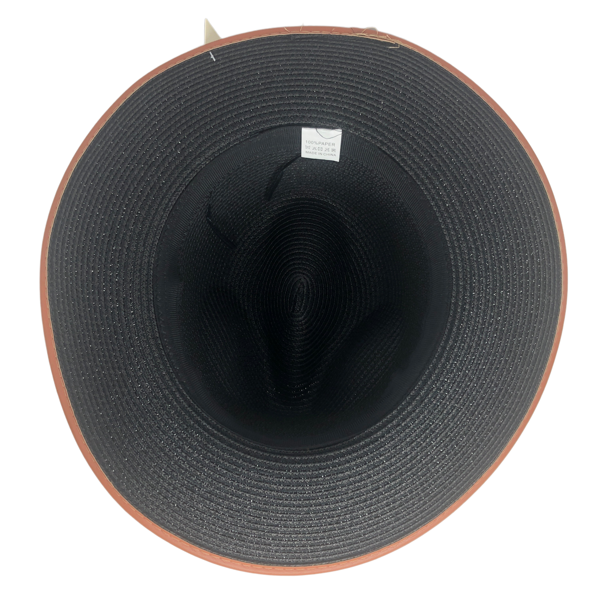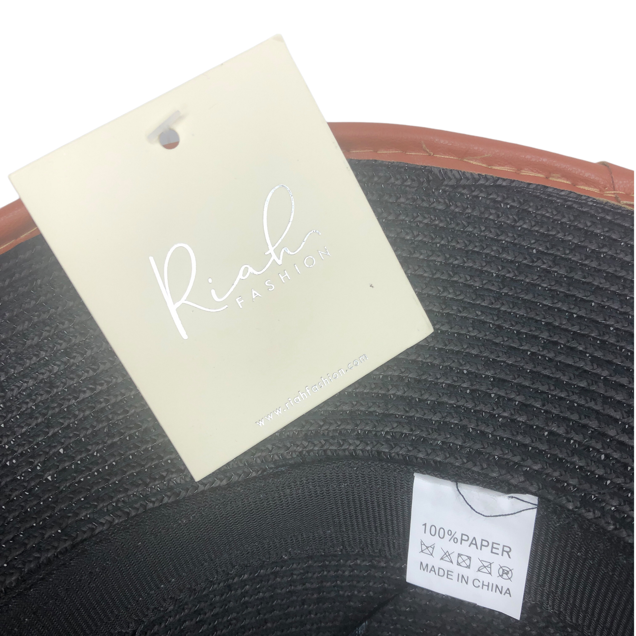 - Faux leather trim around brim