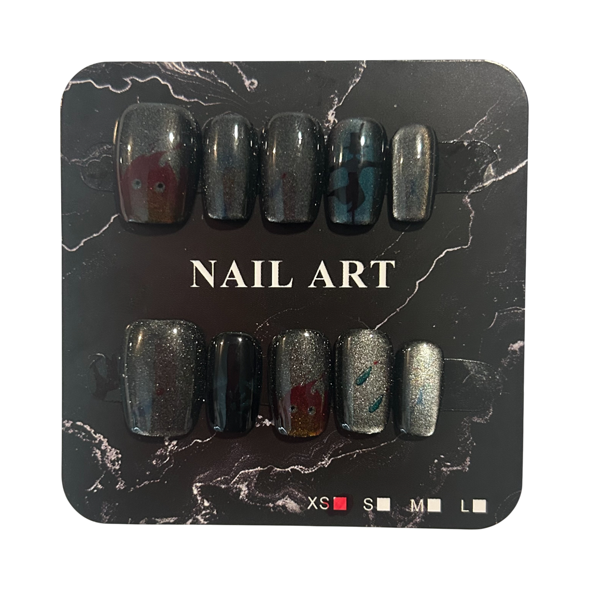 Shimmery Black/Dark Gray Cartoon Short Square Nails - Size Extra Small (XS)