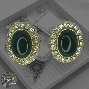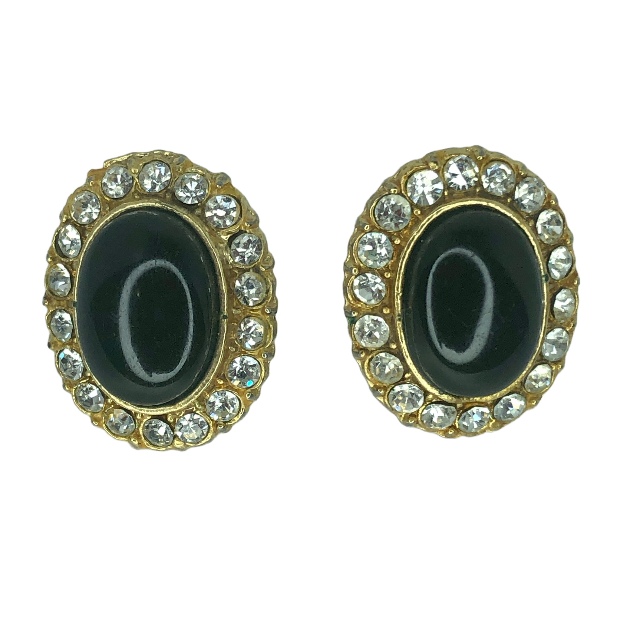 Vintage Gold and Black Oval Bling Earrings