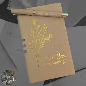 - Inspirational notebook with matching pen