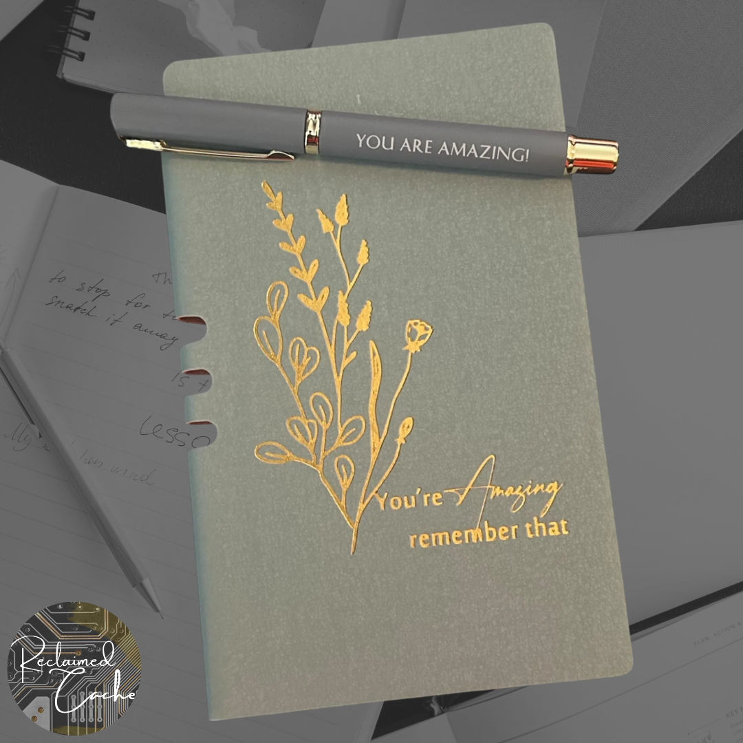 - Inspirational notebook with matching pen